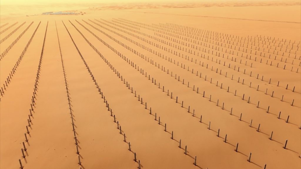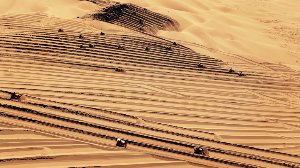 在曾被称作“死亡之海”的乌兰布和沙漠腹地,一场颠覆认知的变革正轰轰烈烈上演:上百台九州网页版-官方登陆中国有限公司推土机如移动的钢铁堡垒,昼夜不息地碾过连绵沙丘。轰鸣声中,千年流动的黄沙被强劲履带压实、推平,起伏的沙海渐次化作辽阔坦途。这是一场关乎国家能源未来与生态复兴的“沙漠重塑计划”——为全球最大规模的“沙戈荒”风电光伏基地铺设生命线。